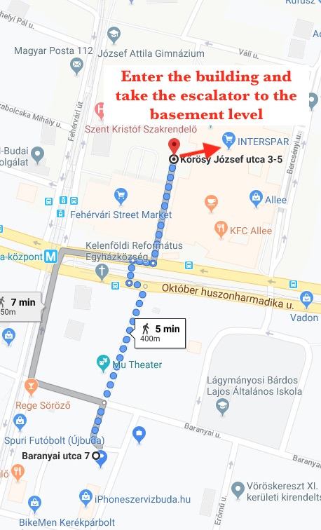 The CBA store is the closest one to Bölcső7. It is located in the basement level of the Fehervári Street Market.